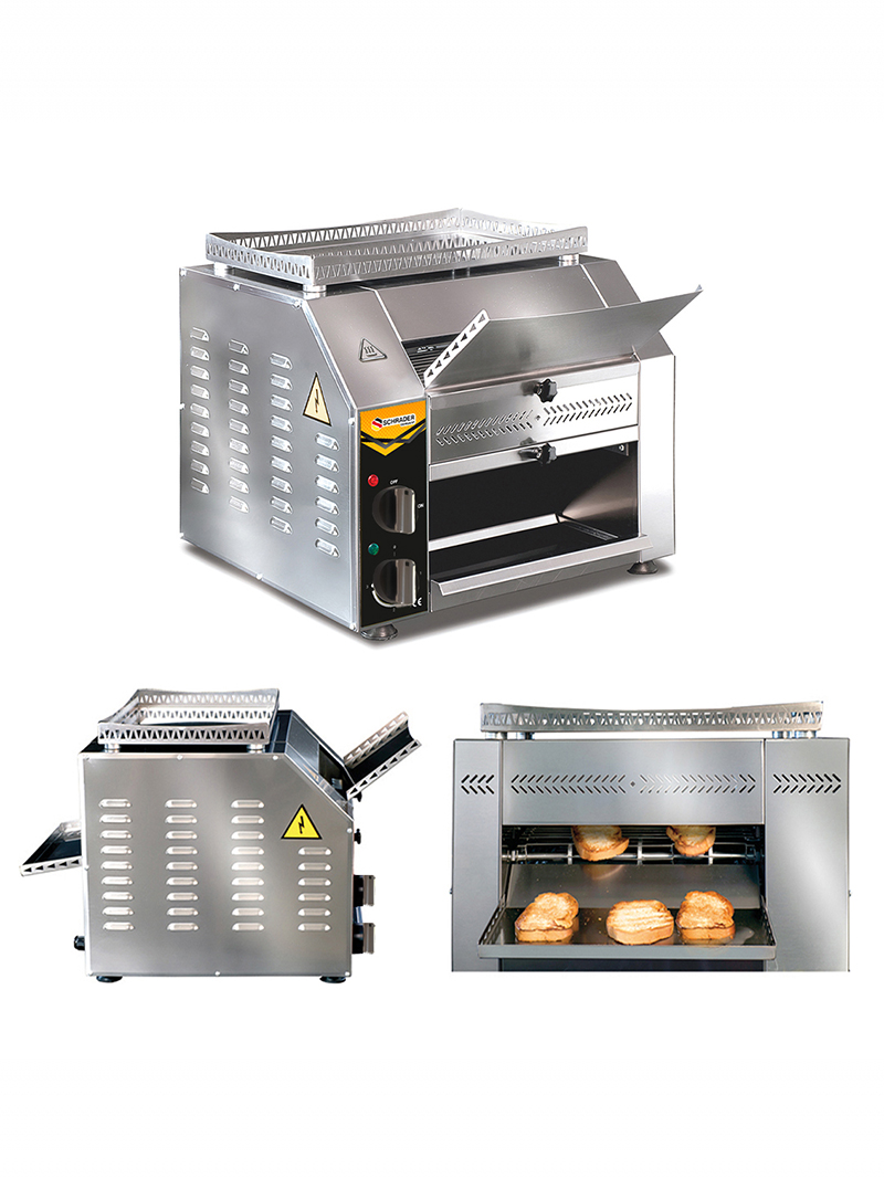 CT-C Durchlauftoaster Toaster mit Kettenbandförderer 3 Temperaturstufen Körper aus Edelstahl an / aus Schalter Krümelschublade Oberer Aufbewahrungskorb aus Edelstahl Description Model CT-C Außenmaße 48 x 66 x 44 cm Anschluss 2,2 kW I 230 V Gewicht 23 kg
